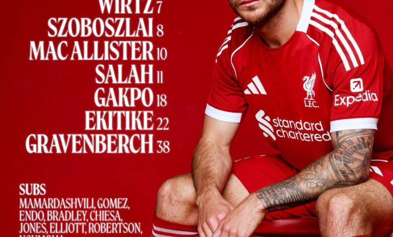 أعلن الجهاز الفني لنادي ليفربول عن تشكيل الفريق الأساسي لمواجهة آرسنال في قمة الجولة من الدوري الإنجليزي الممتاز، في مباراة تحمل طابعًا تنافسيًا قويًا بين الفريقين الساعيين لتعزيز موقعهما في صدارة جدول الترتيب.