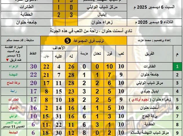 مع انتهاء الجولة، ارتفعت حرارة المنافسة على المراكز من الثالث حتى السادس، بينما يظل الطائرات متصدرًا منفردًا، وتزداد التحديات بين الوايلي وزهراء حلوان وإيديال جولدي في سباق قوي نحو المربع الذهبي، مع ترقب كبير لما ستسفر عنه الجولات المقبلة من صراع محتدم على نقاط حاسمة.