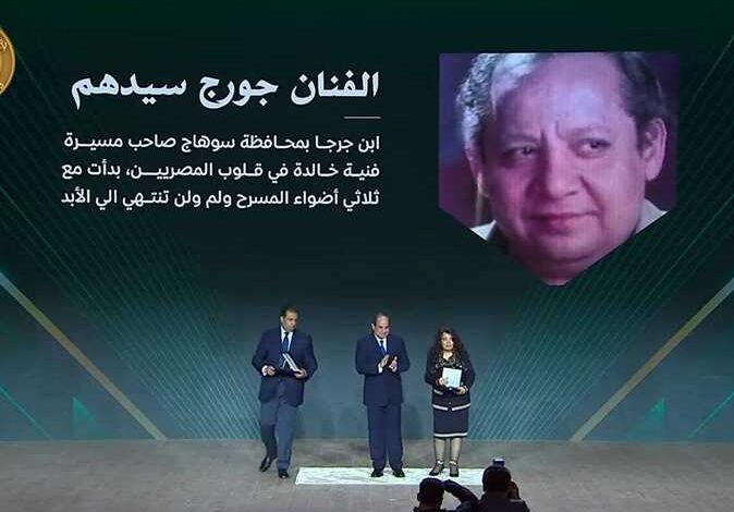 كرم الرئيس عبدالفتاح السيسي، اليوم الخميس، عددا من النماذج المتميزة في سوهاج، وذلك على هامش افتتاح عدد من المشروعات بالمحافظة، ومن أبرز هذه النماذج المكرمة اسم الفنان الراحل جورج سيدهم الذي تسلمت أرملته الدكتورة ليندا مكرم تكريمه كأحد أبناء جرجا بسوهاج.
