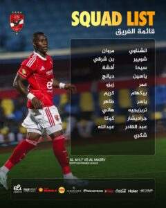 وضمت قائمة الأهلي للمباراة كلًأ من: