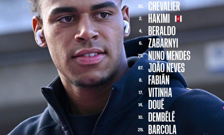 بينما يجلس على مقاعد البدلاء كل من: سافيتش، ماركينيوس، لوكاس هيرنانديز، زائير-إيمري، لي كانغ-إن، كفاراتسخليا، غونزالو راموس، مبابي، مباييه.